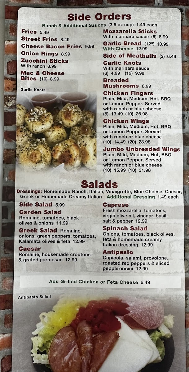The lunch specials are another fantastic feature, offering great value for a hearty meal. For just $12.81, you can indulge in 2 slices of cheese and a drink—ideal for those on a busy schedule or anyone looking for a quick yet satisfying bite. The side orders also serve as perfect complements to your meal; consider the 10 Pieces Of Mac & Cheese Bites ($13.49) or onion rings ($13.49) as excellent choices to round out your experience.